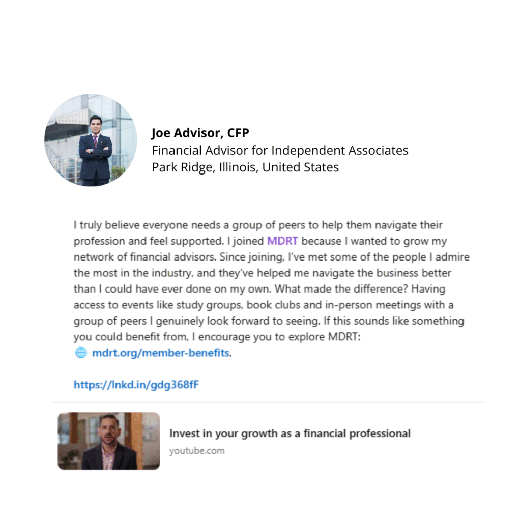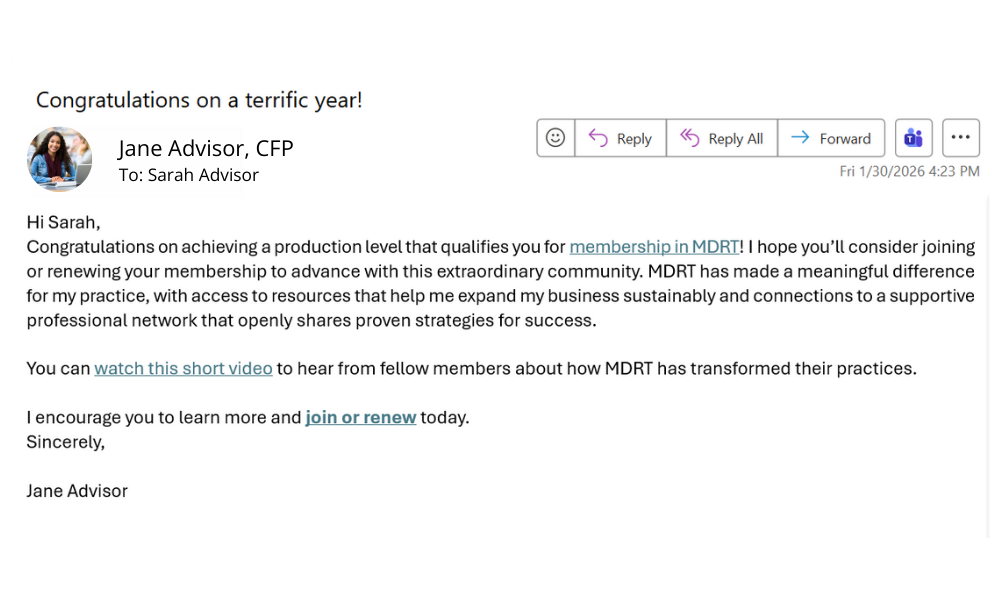 If you’re looking for [insert what others might gain: support, ideas, inspiration], I encourage you to explore MDRT: 🌐 mdrt.org/member-benefits