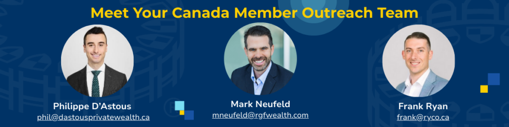 Meet Your Canada Member Outreach Team: If you know someone who qualifies but has not yet joined MDRT, feel free to connect them with the Canada Member Outreach Team. They are available to answer questions and explain how MDRT membership can create long-term value for their practice!